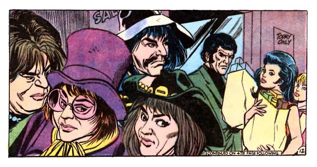 What THEM is actually afraid of is Diana Prince's neighbor across the street, Tony Petrucci, and that's bullpuckey is what that is. Surely, what the revamped, new-for-the-ERA-era Wonder Woman should have had going for her was utter self-sufficiency, but she ends up relying on men - men with less experience, training and drive that she possessed herself - more than ever. In fact, what Tony has in his arsenal that Diana doesn't have in hers is a mother who's willing to cook big meals for strangers. No wonder the yippies are running scared!